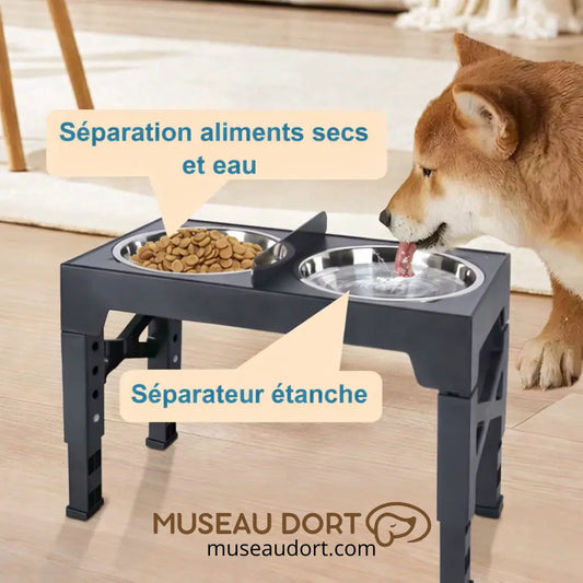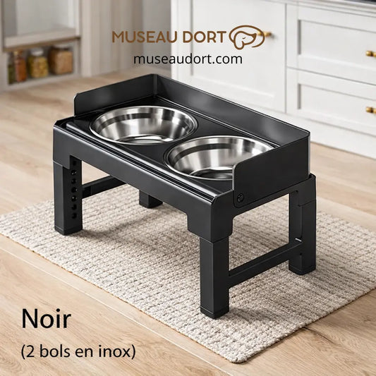 Gamelle surélevée pour chien réglable – double bol inox avec option anti-glouton